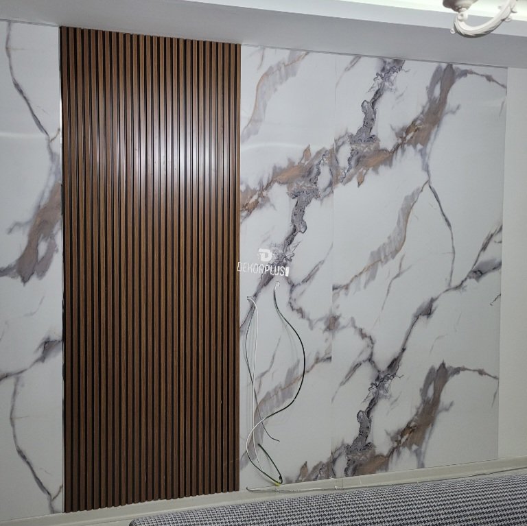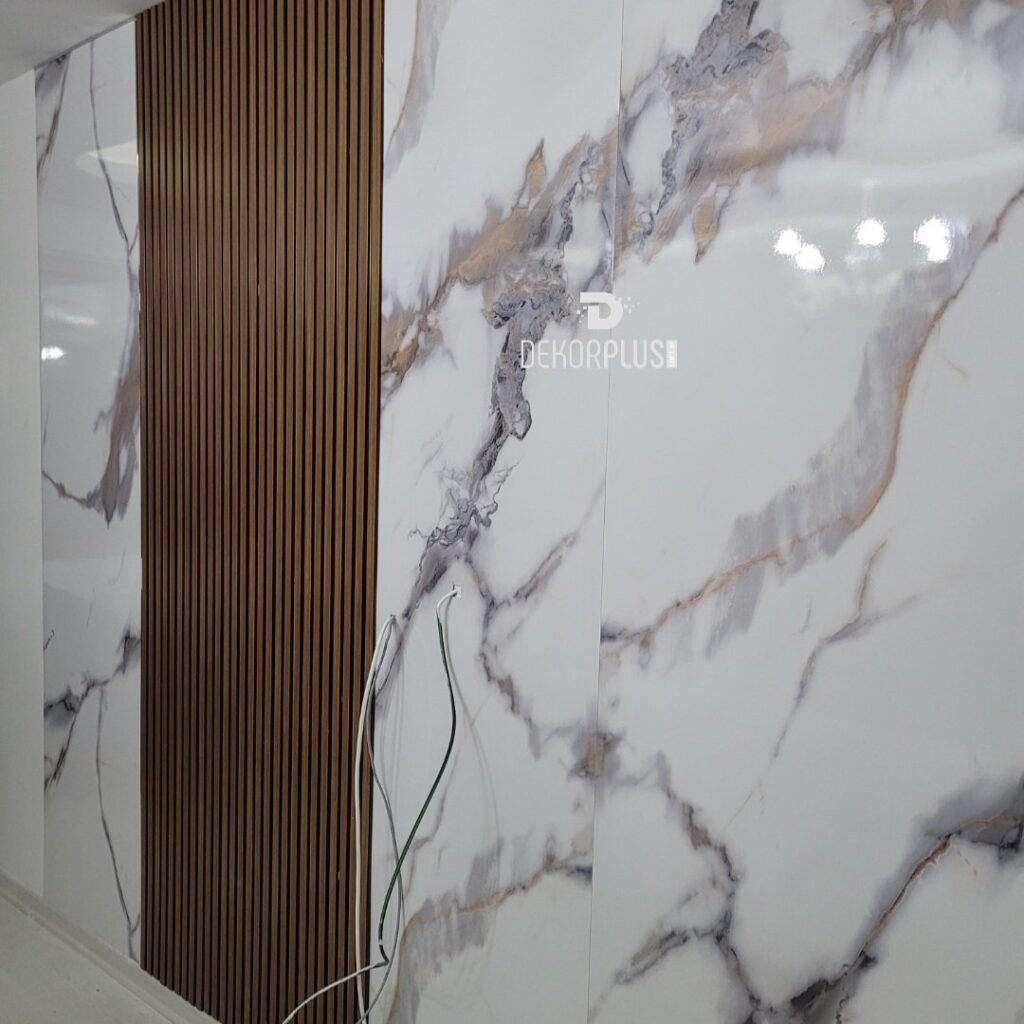 122x280cm Calacatta Gold Mermer Desenli Pvc Duvar Paneli - DPM104